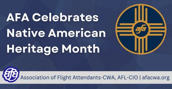 In 2021, the AFA Executive Board passed a resolution establishing our heritage month program and pin, recognizing Native American Flight Attendants and their contributions and influence to the history, culture, and achievements of the U.S. Friday, November 24th, is Native American Heritage Day.